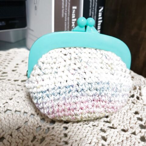 ダイソーのデザインヤーン2本どりでがま口ポーチを編みました あむ