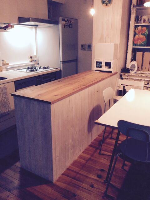 キッチンカウンターdiy 整理収納のインテリア 手作りの実例