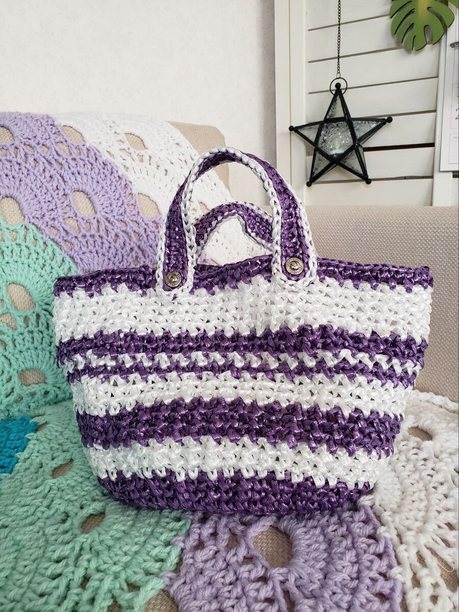 流行りなの 平巻ビニールテープでトートバッグ編んでました