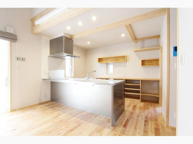 のびのび暮らす平屋住宅 キッチンの造作背面収納 重量木骨の家 選ばれ