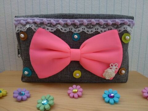 100均ポーチを簡単ガーリーに クラッチバッグリメイク Peachy