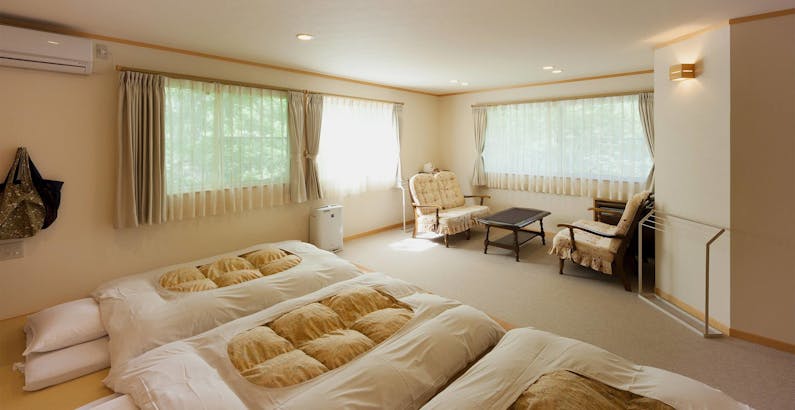 禁煙室 広々快適 8畳のお布団スペースと6畳のソファスペー 飛騨
