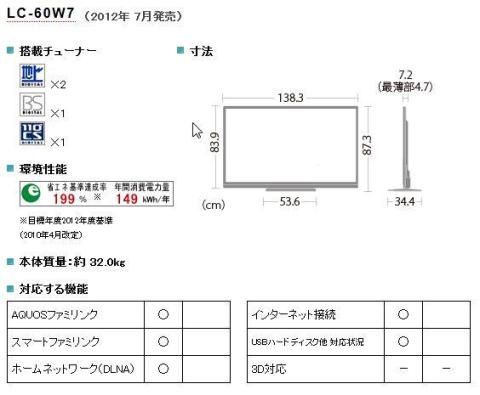 Aquos クアトロン 3d Lc 60g7 60インチ の製品画像 価格 Com