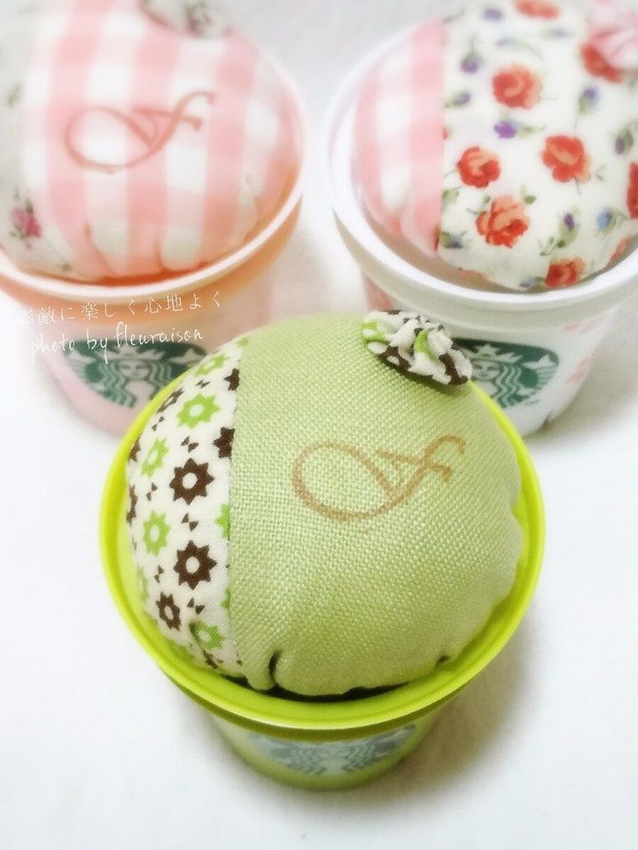 スタバのプリンカップでdiy キュートなピンクッションできました