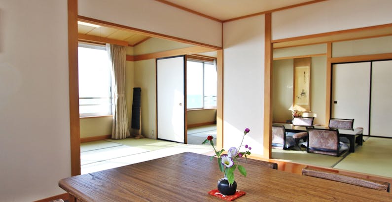 全室海側 和室12畳 和室6畳 ダイニング デラックス 50歳からのおとな旅 お食事はイステーブル 量は少なめ充実