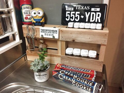 100均すのこでスパイスラック 子育てしながらdiy カフェ風